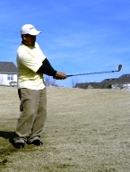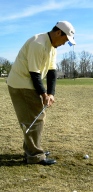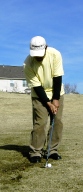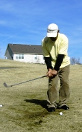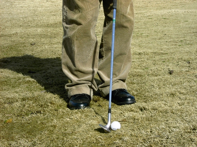 クラブフェースをかぶせて上からぶちつけるようにボールをヒットして転がしたり、