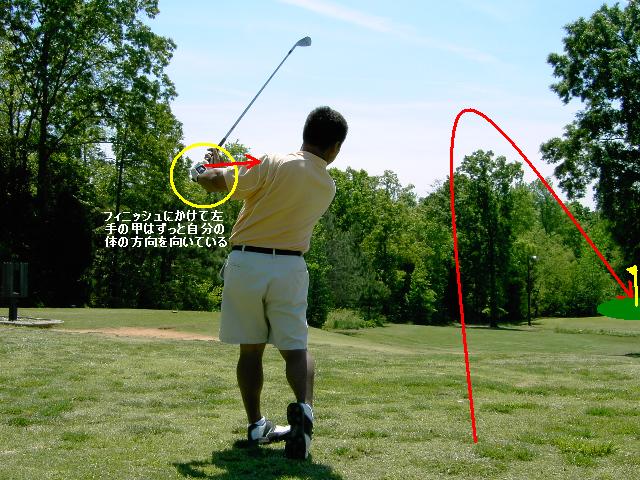 左手の甲をずっと自分の方向に向けたままフィニッシュをするイメージです。